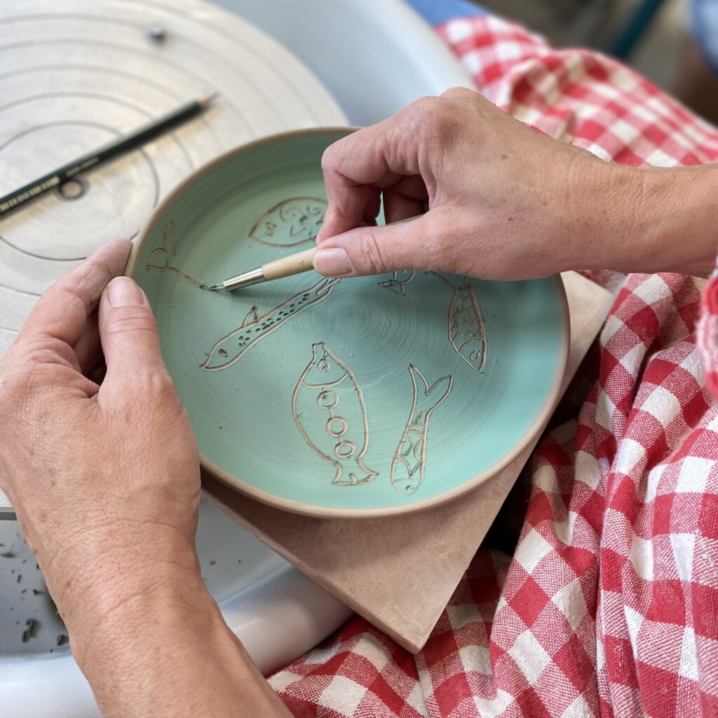 Deelnemen aan een zomerweek is mooie gelegenheid om je de verschillende decoratie technieken eigen te maken en je draaivaardigheden te verbeteren. De eerste dagen gaan we draaien en afdraaien, we gebruiken daarvoor de G&S 254 klei. Daarna komen de verschillende decoratie technieken aan bod zoals uitsparing, sgraffito, mishima, sponzen en stempelen. Ik leg uit hoe je je eigen engobe maakt, dit mooi aanbrengt op je werk en geef demo’s van alle technieken. Je legt zo een mooie basis in de vele mogelijkheden van het werken met engobe. Om deel te nemen moet je wel al een beetje draai ervaring hebben omdat het decoreren zo de nodige aandacht kan krijgen. NOTE : Een beetje draai ervaring vereist om aan deze week deel te nemen!